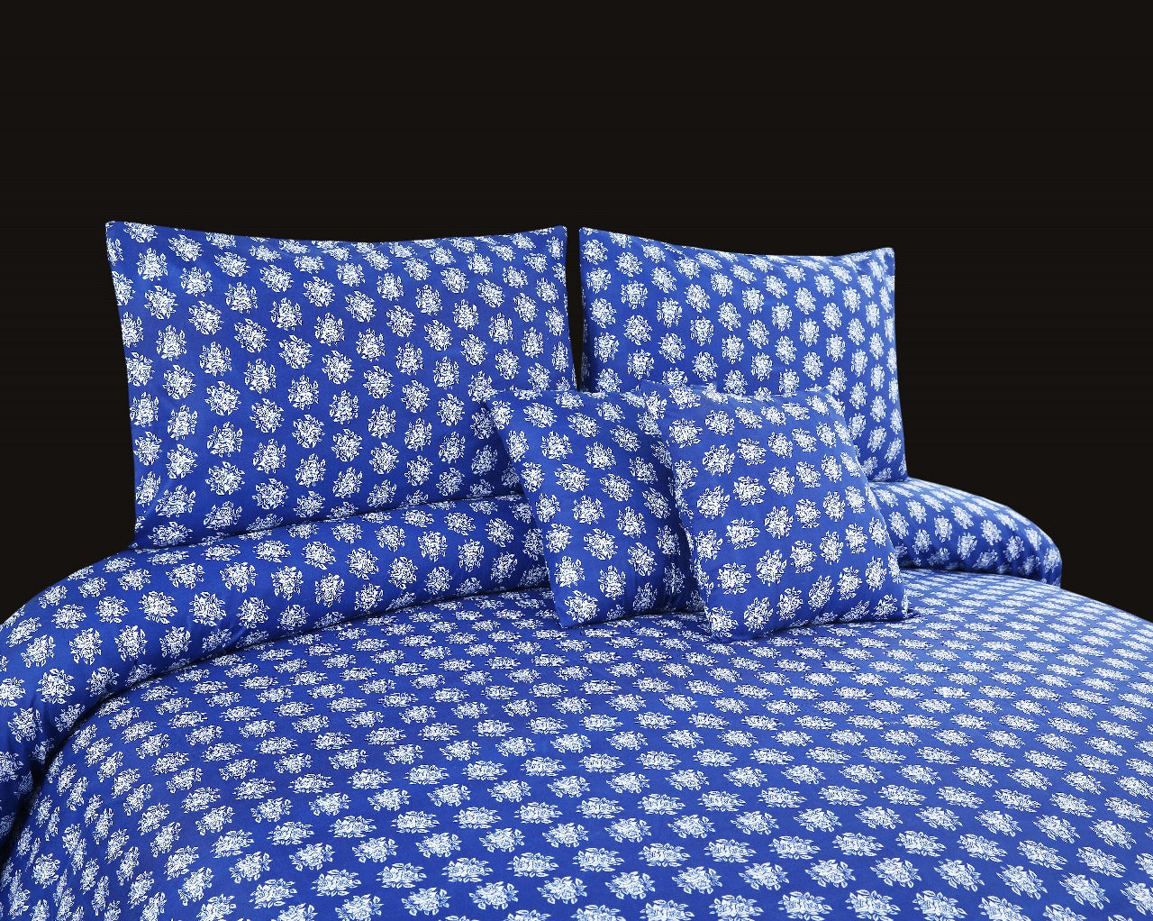 Blue Blossom Printed Bedsheet – Classic Blue with White Floral Charm