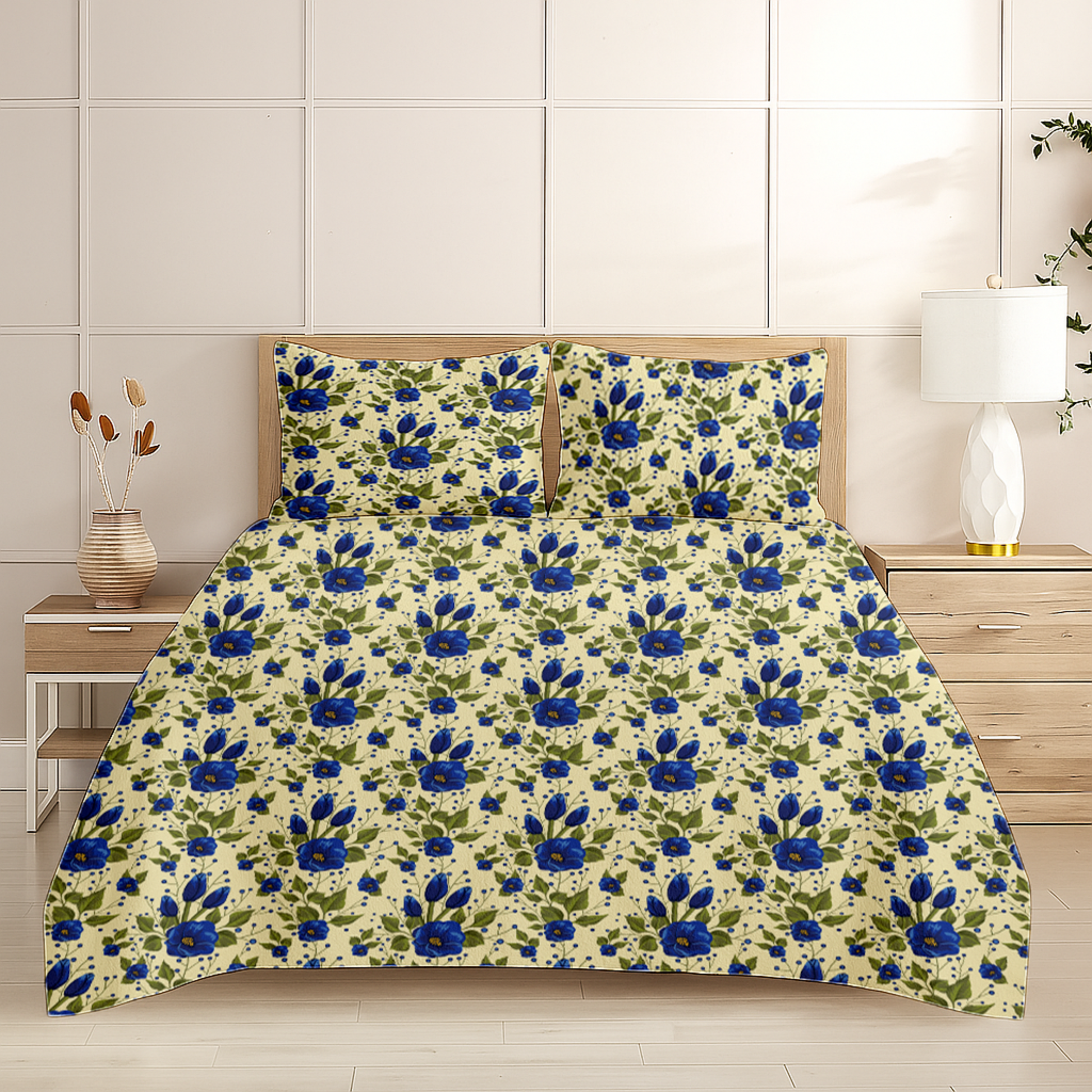 Bring the beauty of blooming gardens into your bedroom with our Floral Printed Bedsheet Collection. Designed to add freshness, color, and elegance to your space, each bedsheet features intricate floral patterns that create a soothing and inviting atmosphere. Crafted from premium, soft fabric, they promise both comfort and style — perfect for everyday luxury.