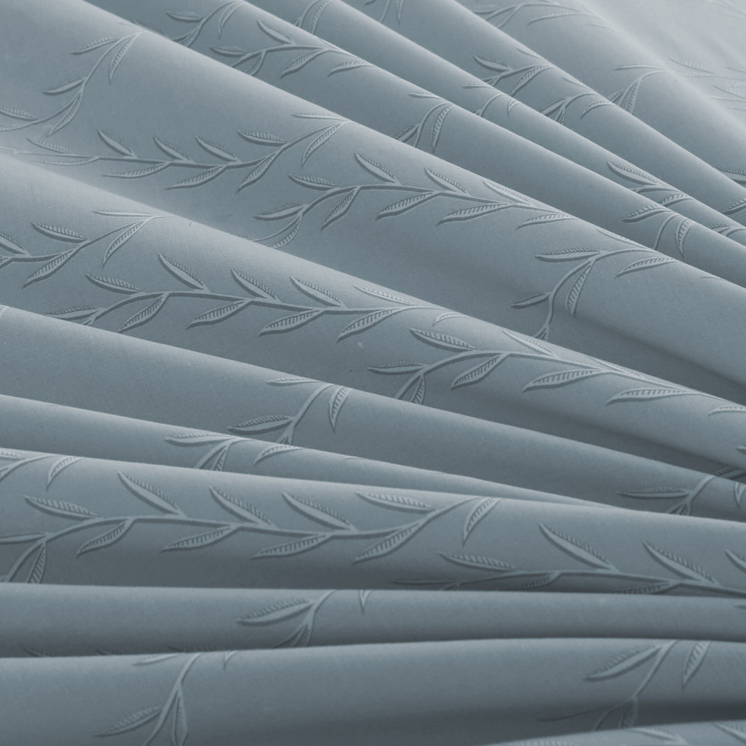 Imagine drifting off to sleep in the gentle rustle of leaves, a serene escape crafted within the sanctuary of your bedroom. The design isn’t just linens, its an experience. Delicate white leaves, light dusky green base, evoking the quiet beauty of nature. The elegant design complements any décor, transforming your bedroom into a divine space. Made with light weight and breathable fabric, oasis azul invites you to sink into unparalleled comfort.