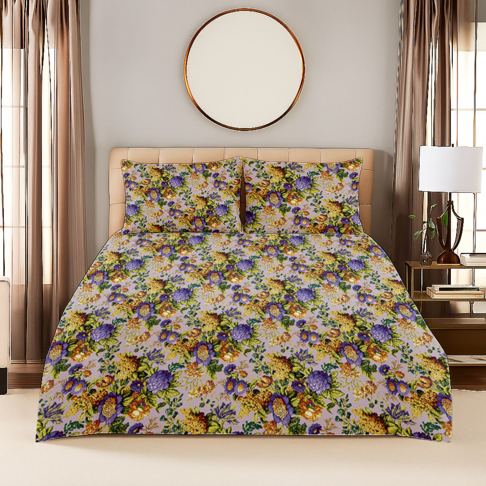 Bring the beauty of blooming gardens into your bedroom with our Floral Printed Bedsheet Collection. Designed to add freshness, color, and elegance to your space, each bedsheet features intricate floral patterns that create a soothing and inviting atmosphere. Crafted from premium, soft fabric, they promise both comfort and style — perfect for everyday luxury.